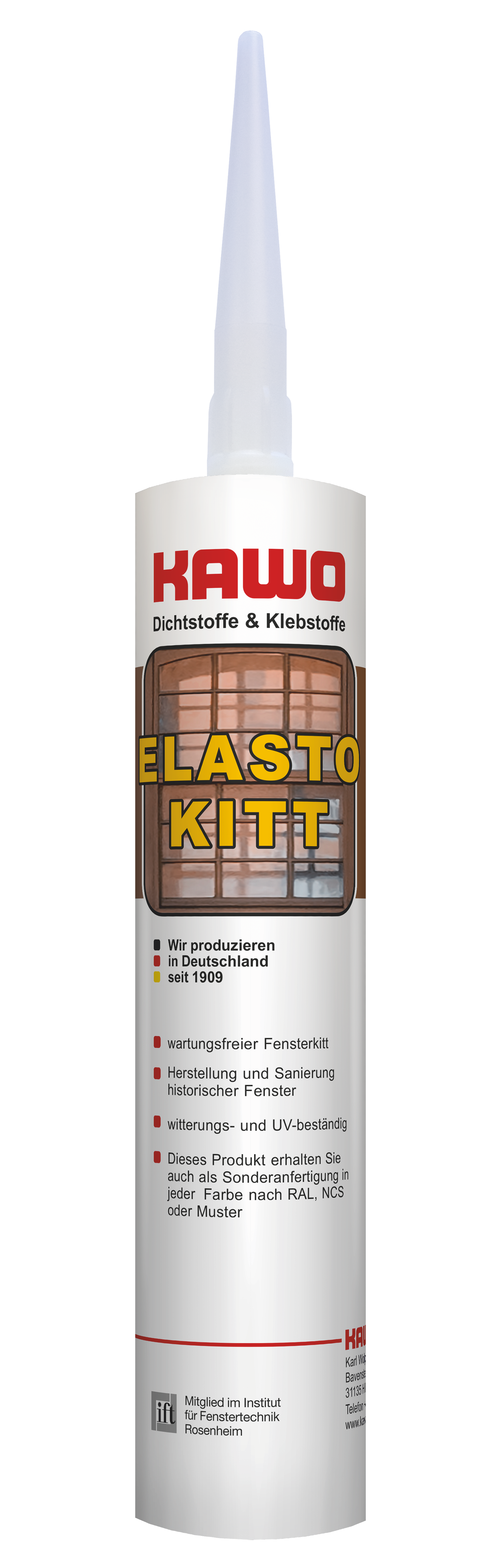 KAWO Elastokitt ist ein innovativer spezieller Fensterkitt für Verglasungen von Fenstern in denkmalgeschützten Gebäuden. Es wurde für die Herstellung und Sanierung von historischen Holzfenstern sowie Stahl- und Betonfenstern entwickelt.